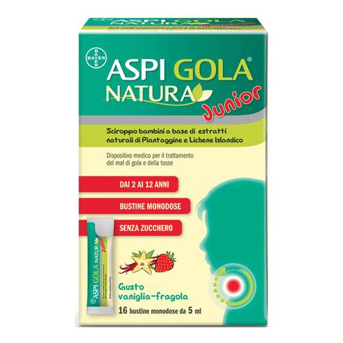 Indicazioni: Aspi Gola Natura Junior, a base di estratti naturali e glicerolo forma un film mucoadesivo persistente che protegge la mucosa faringea dagli agenti irritanti, migliorando la funzionalità delle prime vie aeree. Promuove inoltre l'idratazione della mucosa e del muco favorendo la fisiologica espettorazione. La formulazione ricca in mucillagini protegge la mucosa dalle irritazioni ed esplica azione emolliente e lenitiva in caso di gola infiammata. Il gusto di frutta lo rende particolarmente gradito al bambino.